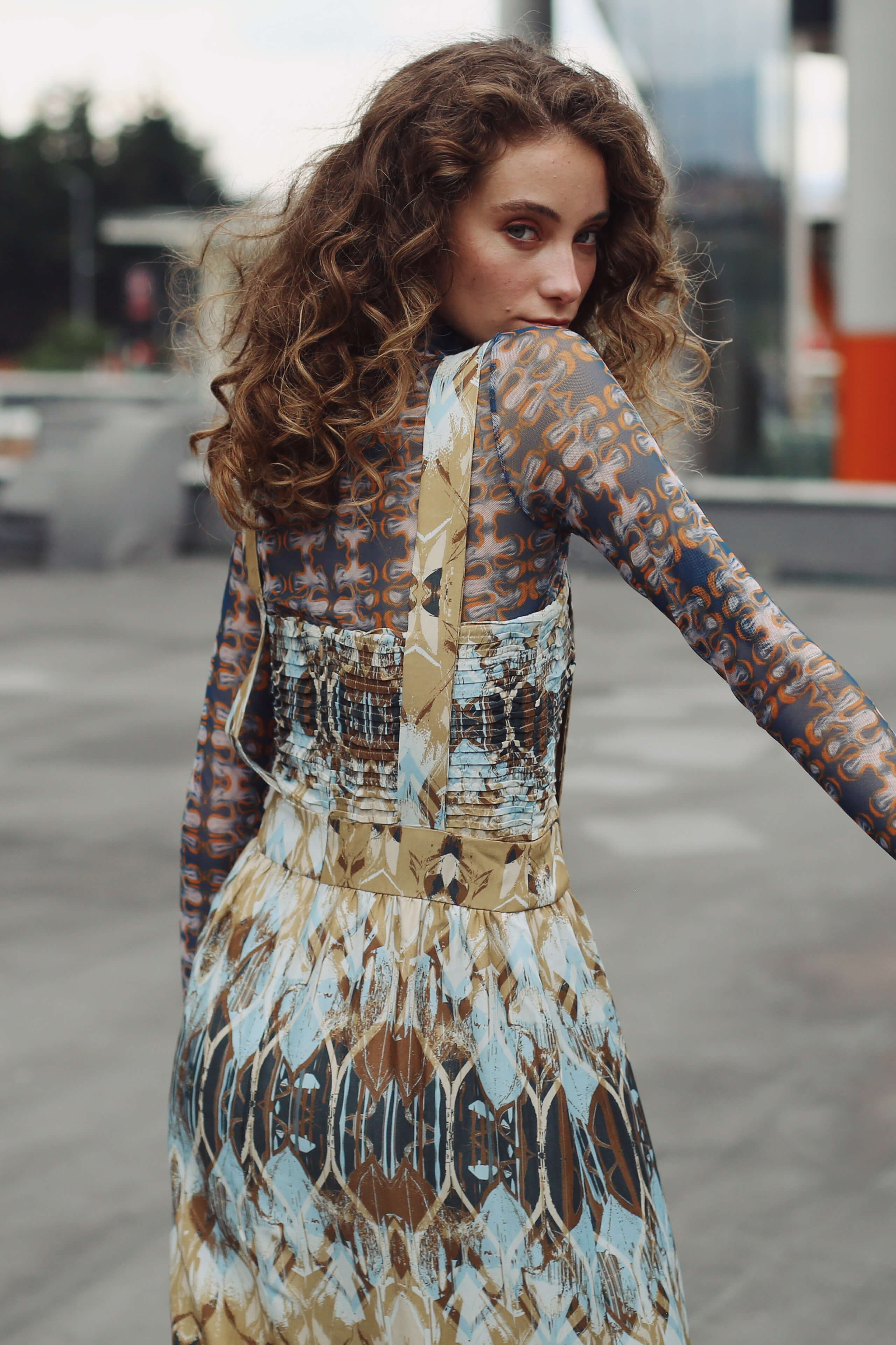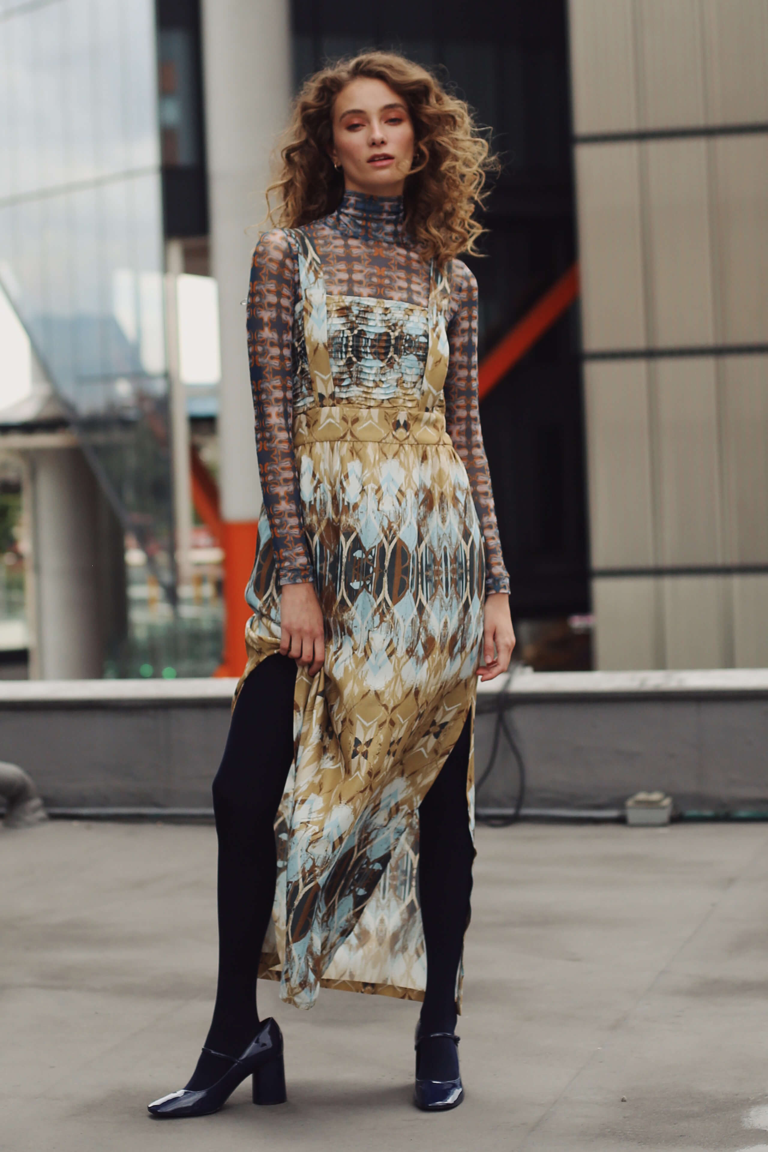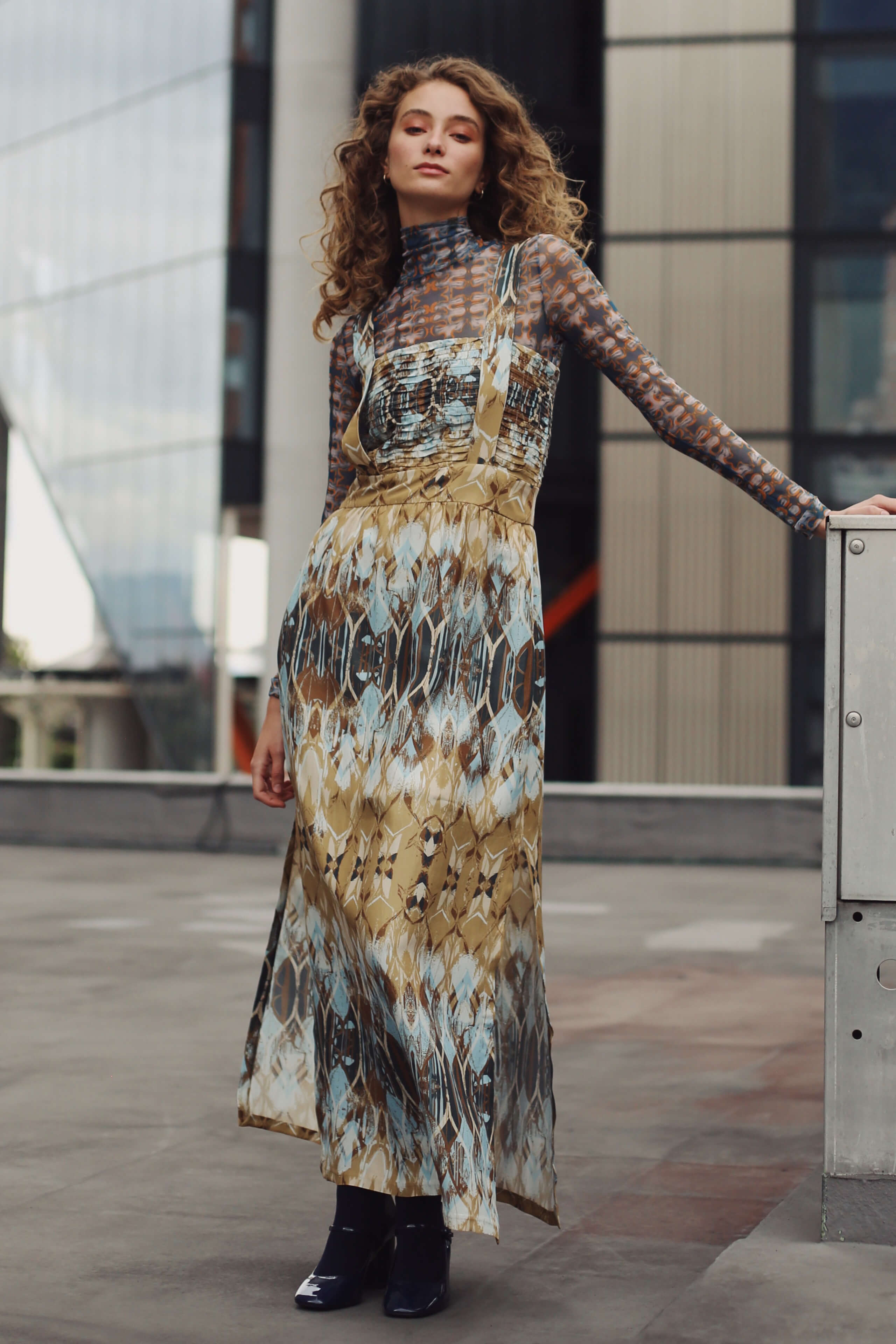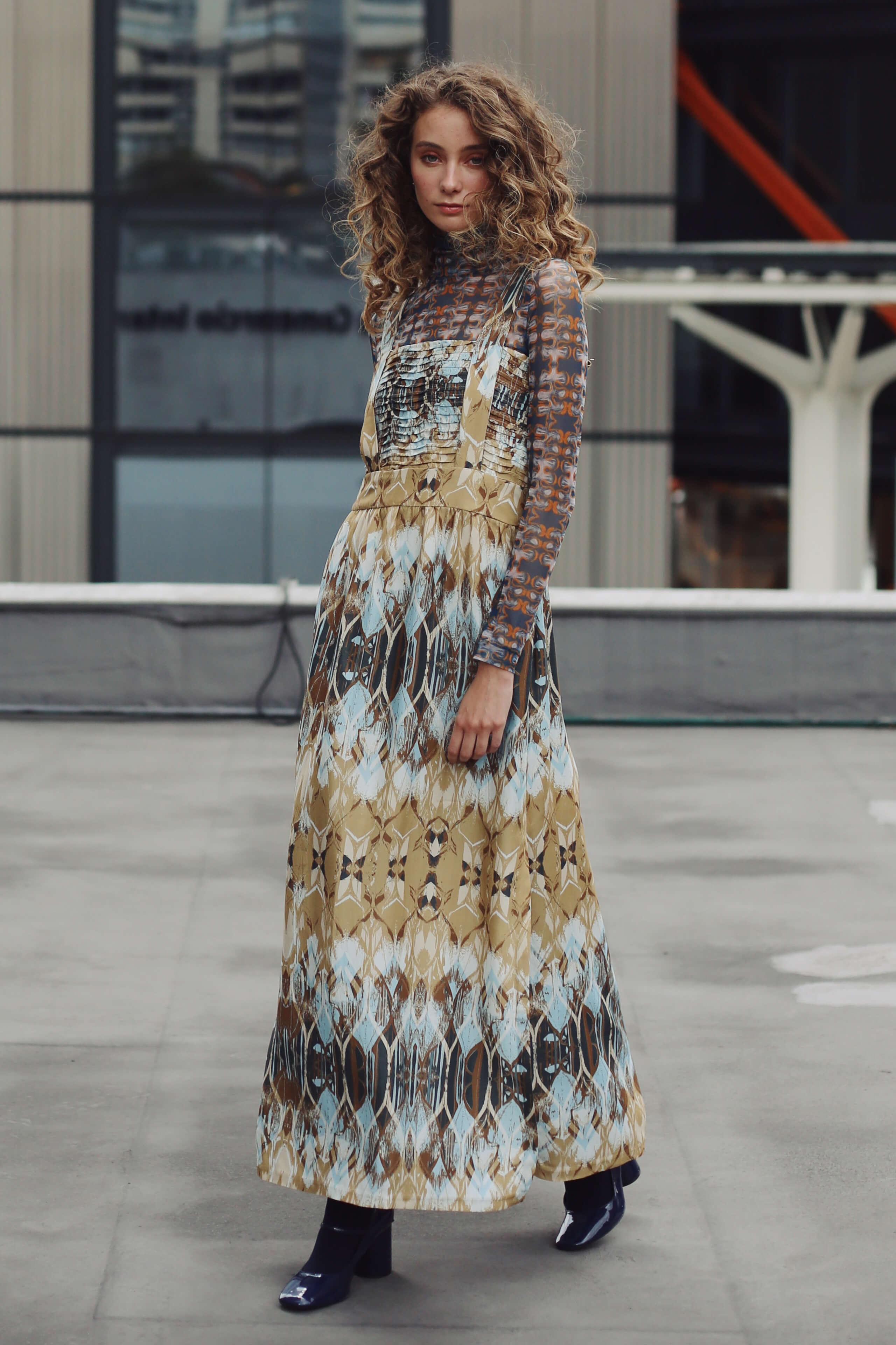 El Vestido Lula es una pieza larga y sofisticada, confeccionada en un exclusivo estampado abstracto en tonos azul y marrón. Su diseño incorpora delicados detalles de alforzas onduladas en el corpiño que aportan textura artesanal y realzan la silueta. El escote cuadrado enmarca elegantemente el torso, mientras que los tirantes le dan un aire moderno y distintivo. Las aberturas laterales en la falda añaden frescura y movimiento, logrando un balance entre elegancia y comodidad.