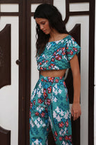 Crop top con mangas cortas, textura triangular hecha a mano, escote tipo barco y silueta amplia.